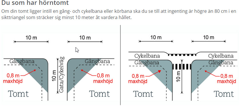 Du som fastighetsägare måste uppfylla kravet på fri sikt och beskära växter och träd så att de inte växer ut över gång-, cykel- eller vägbana. Reglerna om fri sikt gäller gator, cykelvägar och tomtanslutningar i kommunen.