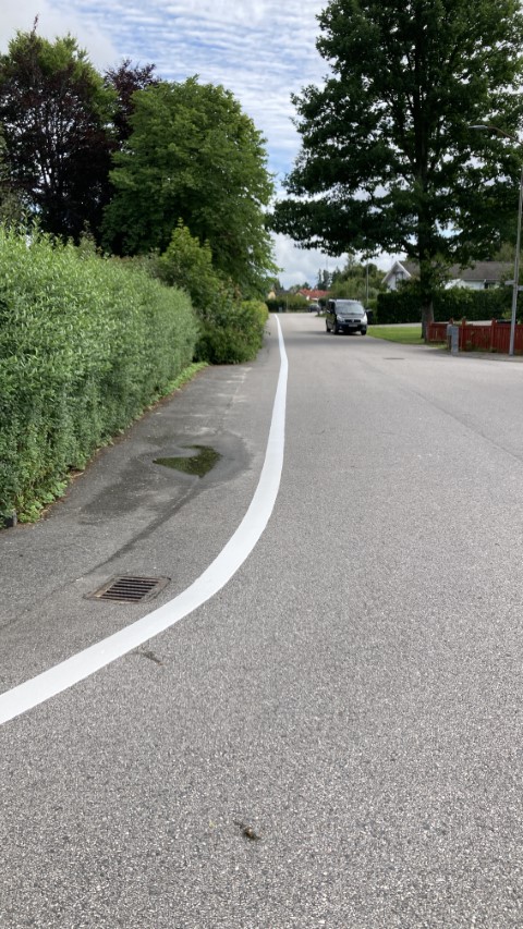 - Oxelvägen - Tallvägen : Linje 1 meter från vägkant målad upp till Asklandavägen