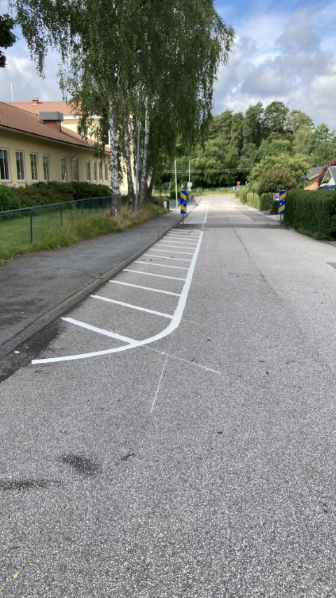 - Skolvägen - Snedstreckade linjer vid Gula skolan