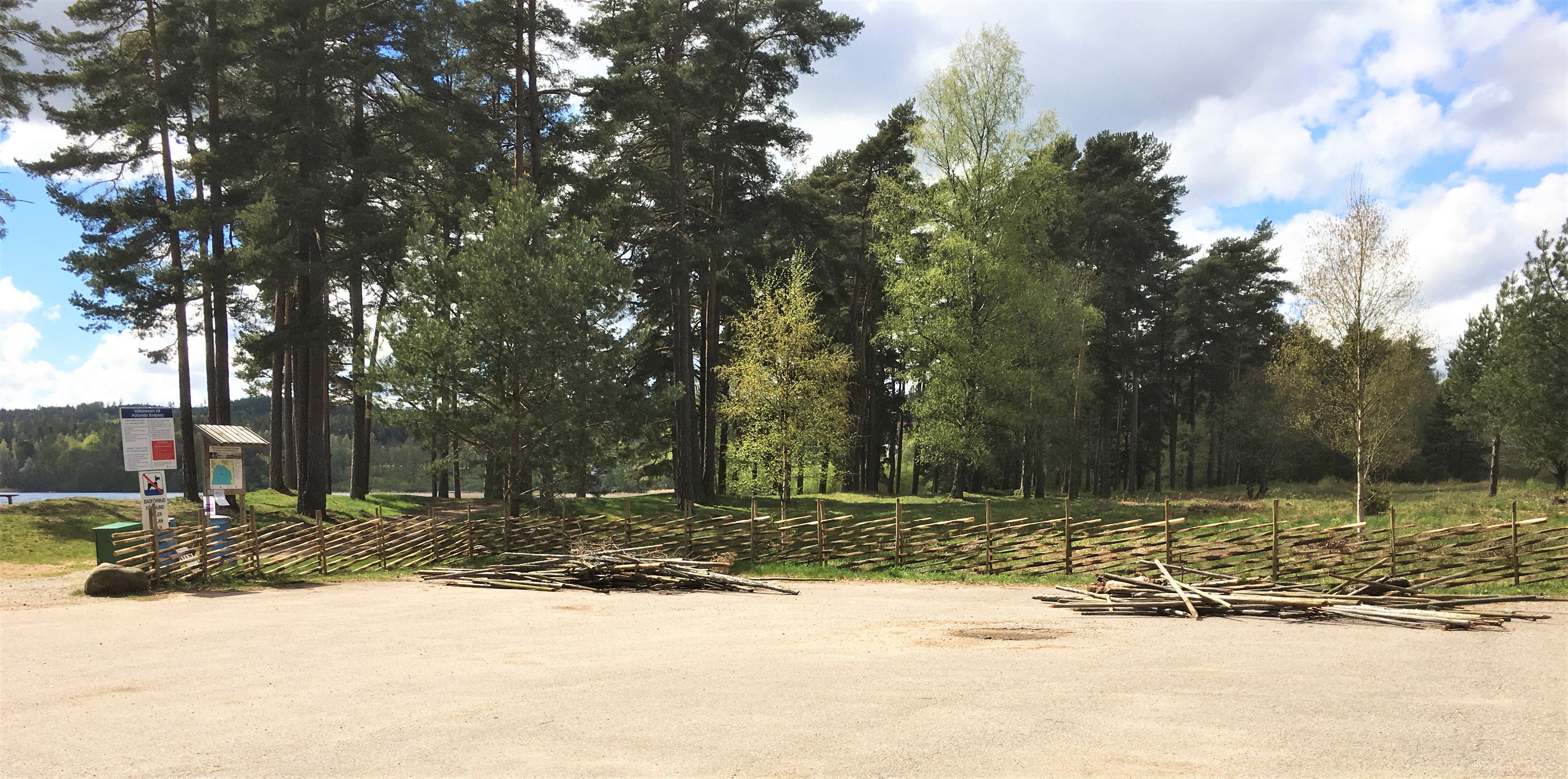 Nytt staket runt föreningens parkeringsplats vid Långgrundets badplats.