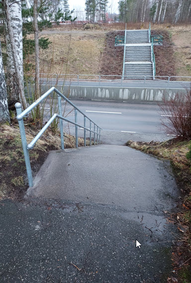 - Nytt räcke vid trappan från Klockarevägen ner mot Storavägen